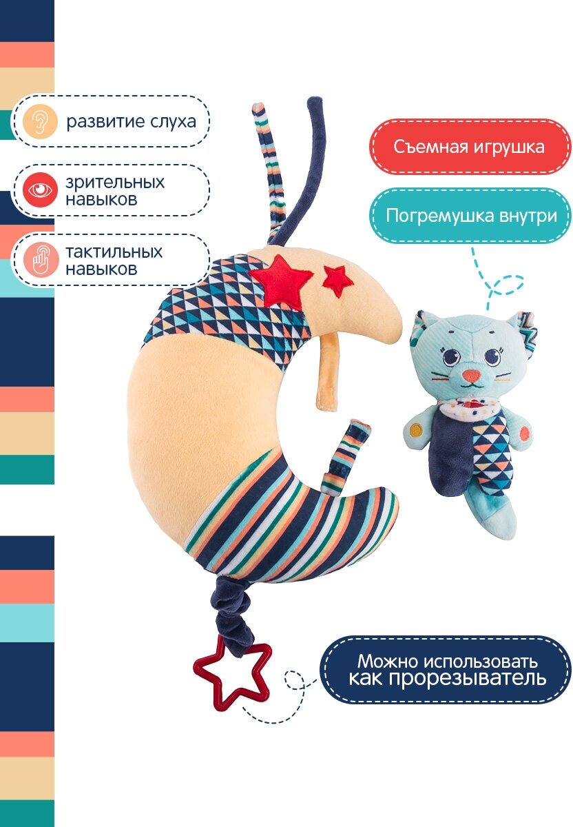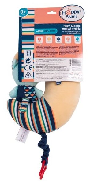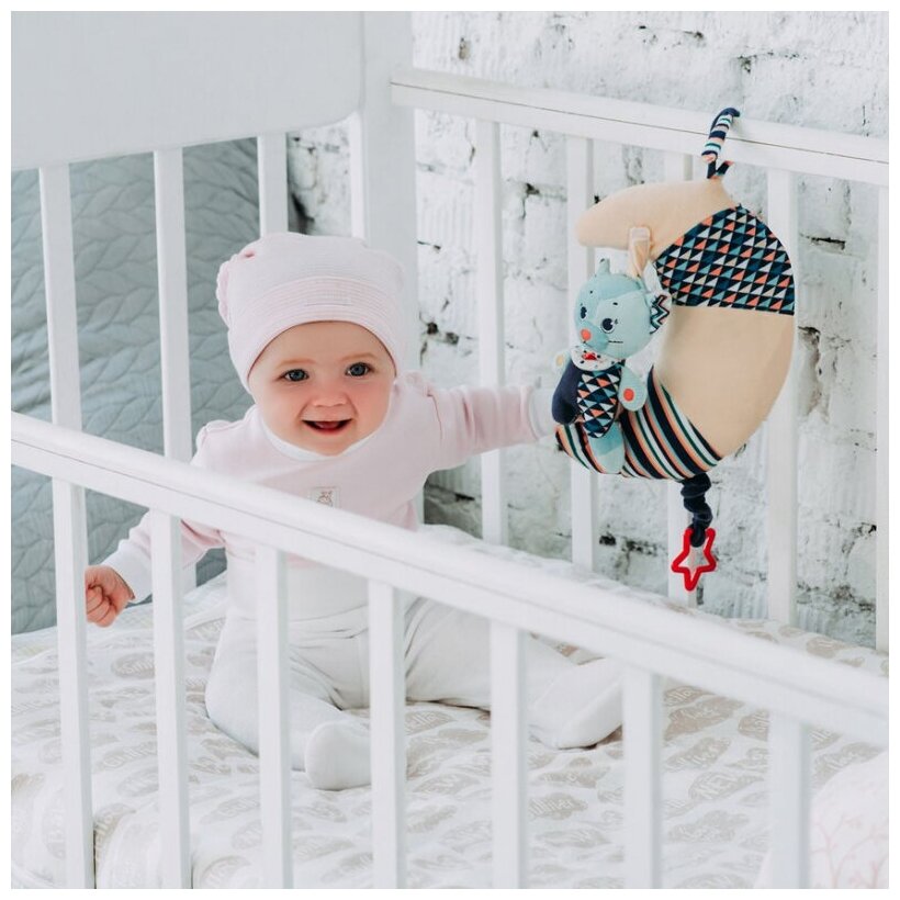 Type: hanging toy, effects: sound, educational elements: tactile inserts, material: plastic, textile