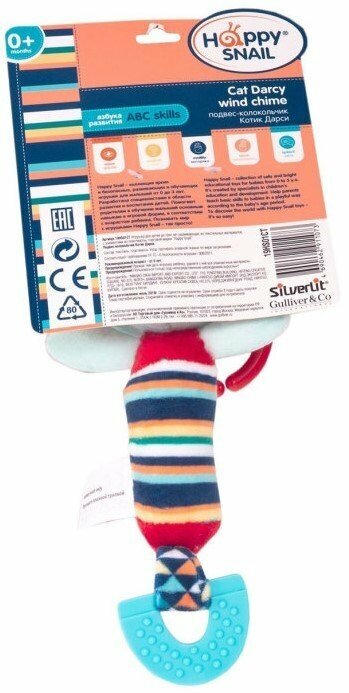 Type: hanging toy, effects: sound, educational elements: bell, teether, tactile inserts, material: plastic, textile