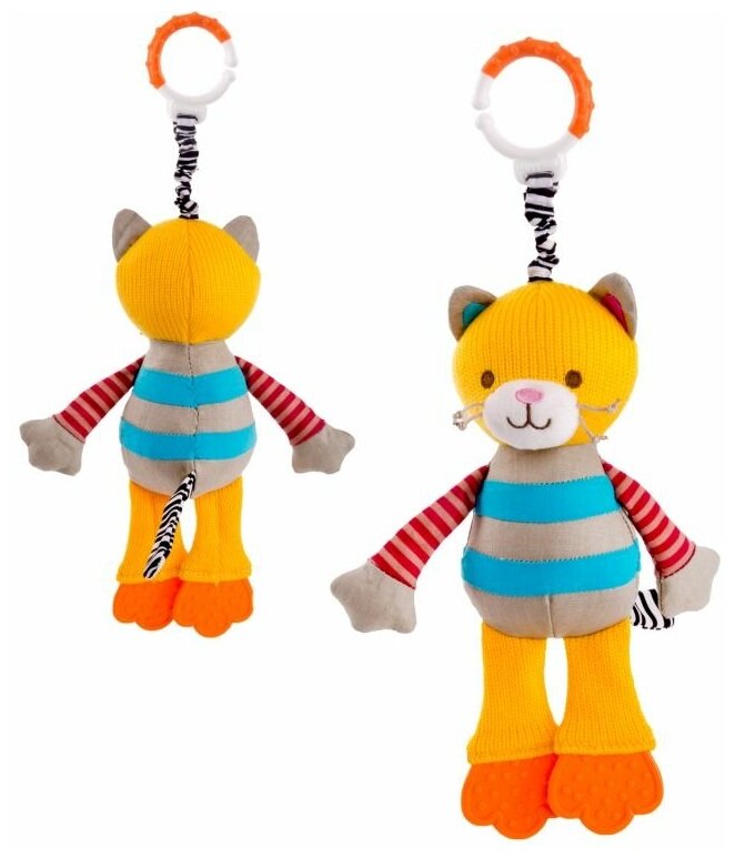 Type: hanging toy, educational elements: teether, tactile inserts, material: plastic, textile