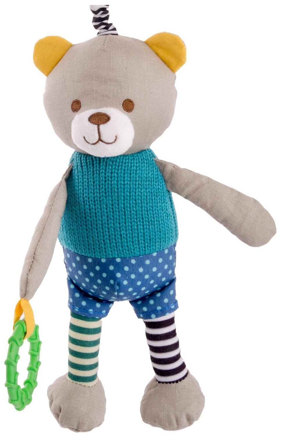 Type: hanging toy, effects: sound, educational elements: teether, tactile inserts, rustling and crunchy elements, material: textile