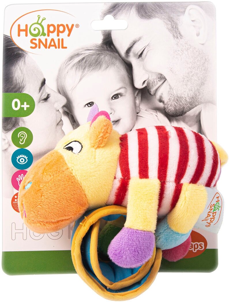 Type: hanging toy, effects: sound, educational elements: squeaker, rattle, tactile inserts, material: textile