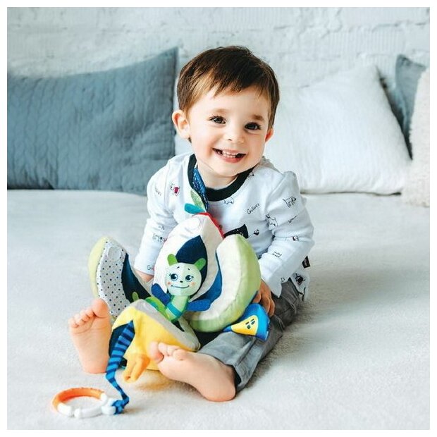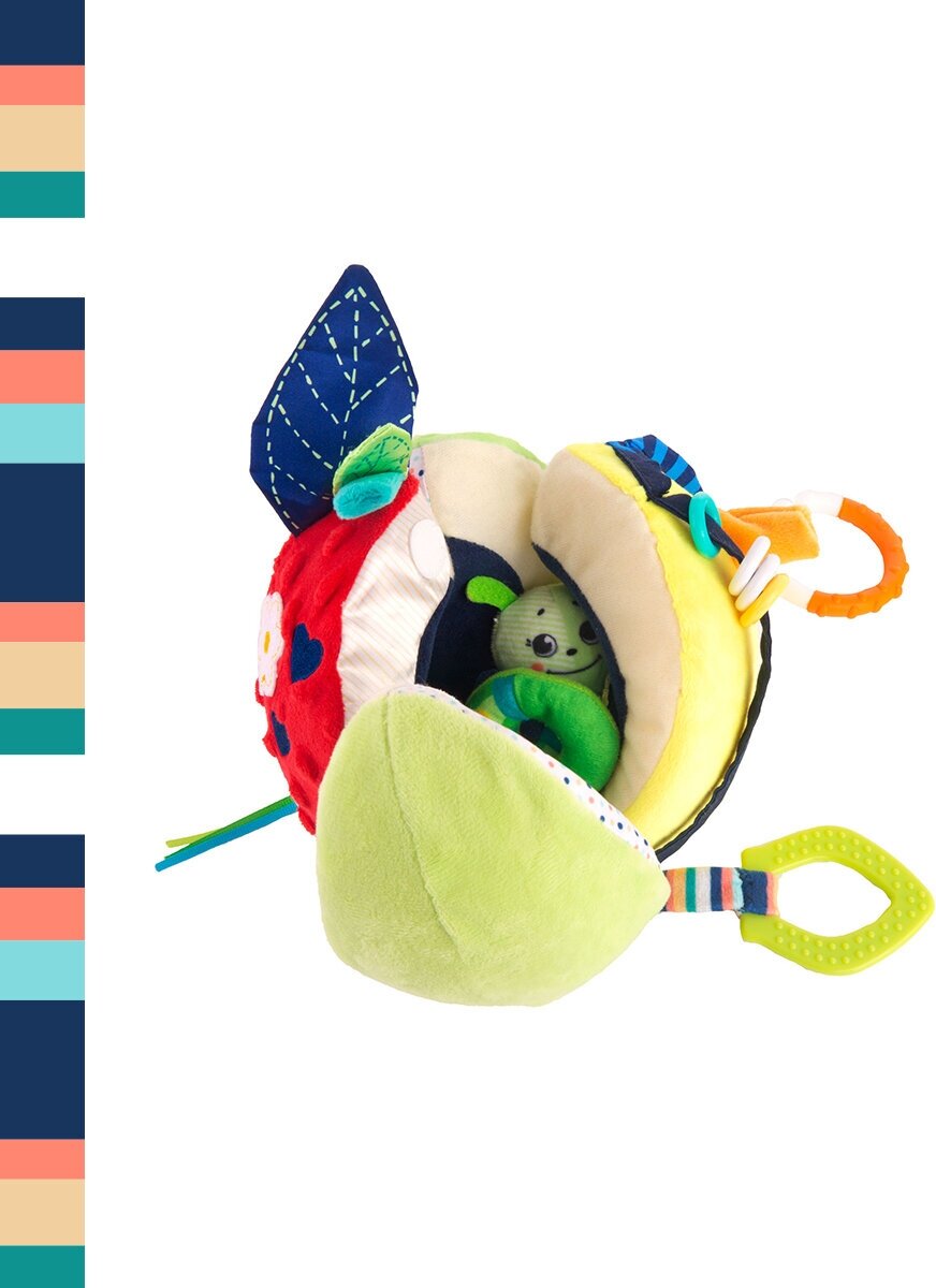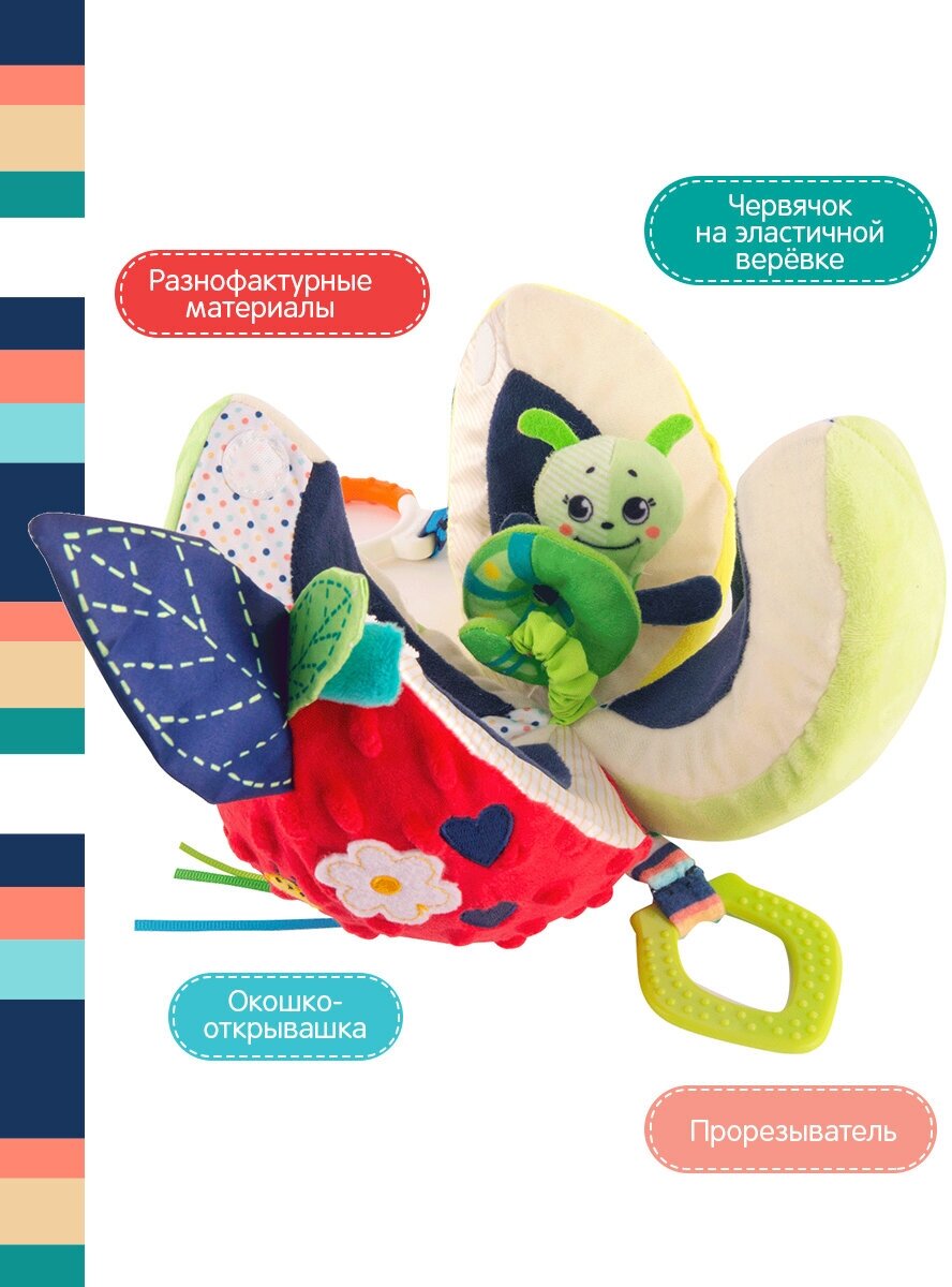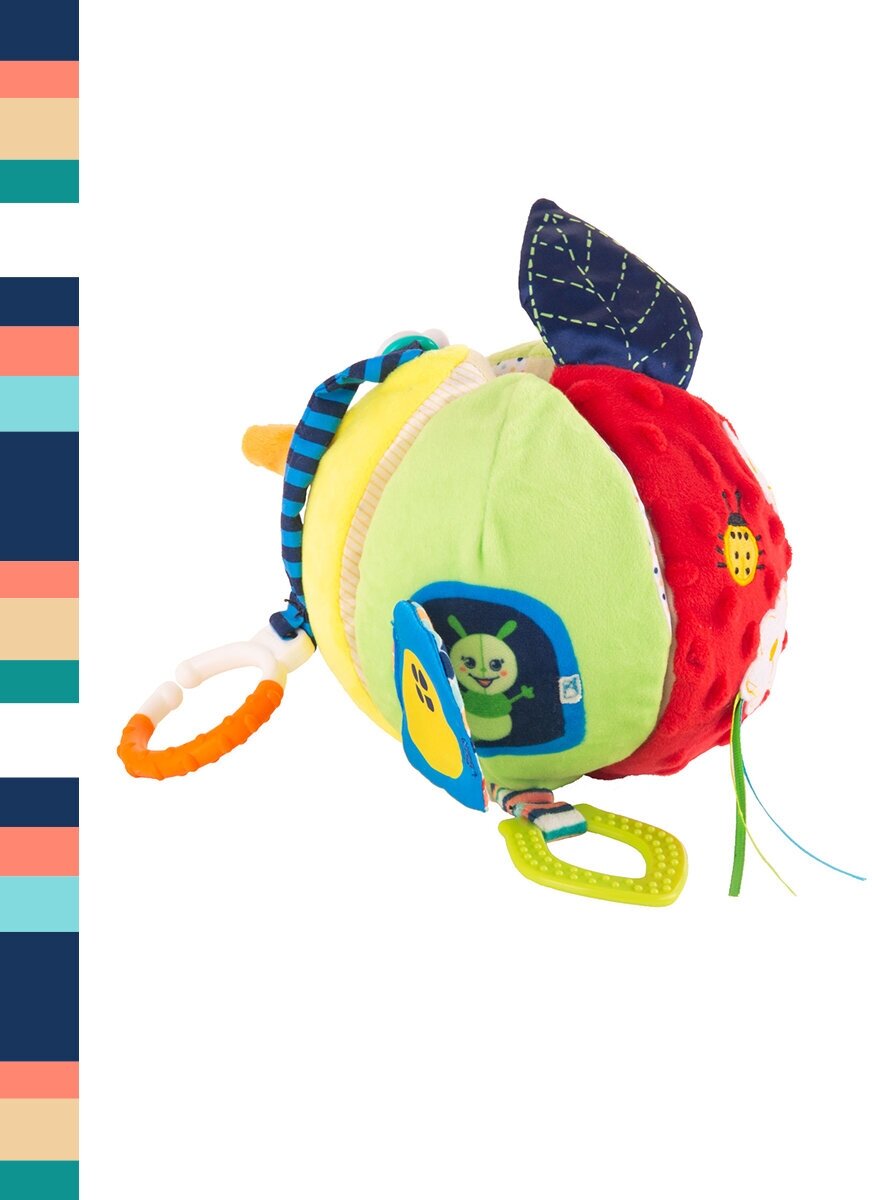 Type: hanging toy, effects: sound, educational elements: teether, tactile inserts, rustling and crunchy elements, material: plastic, textile