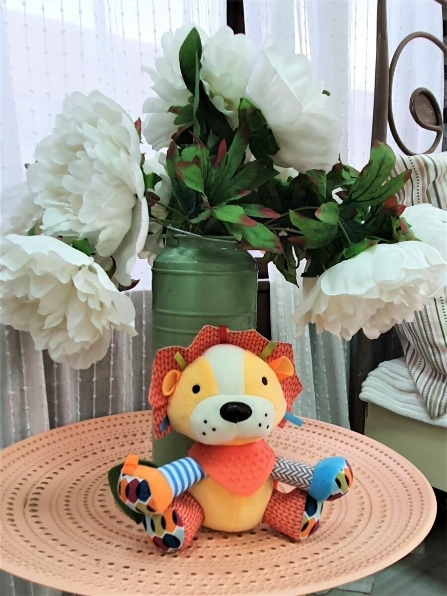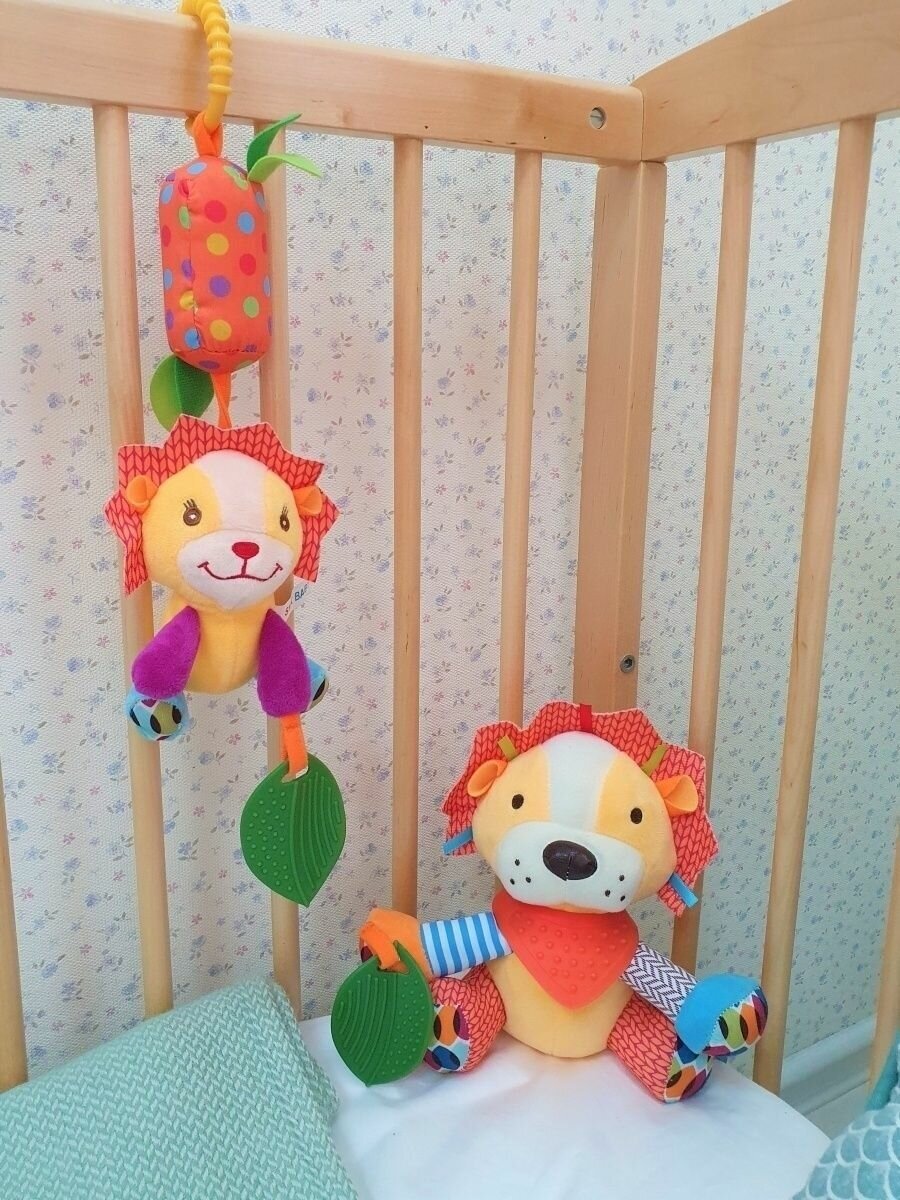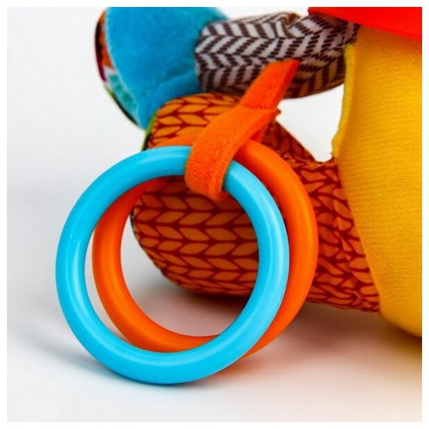 Type: hanging toy, effects: sound, educational elements: rattle, teether, rustling and crunchy elements, material: plastic, rubber, textile, plastic, textile, silicone