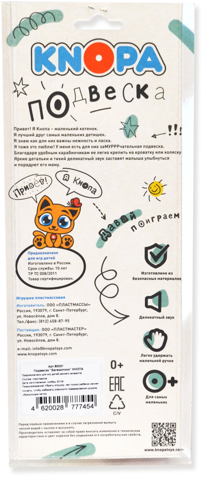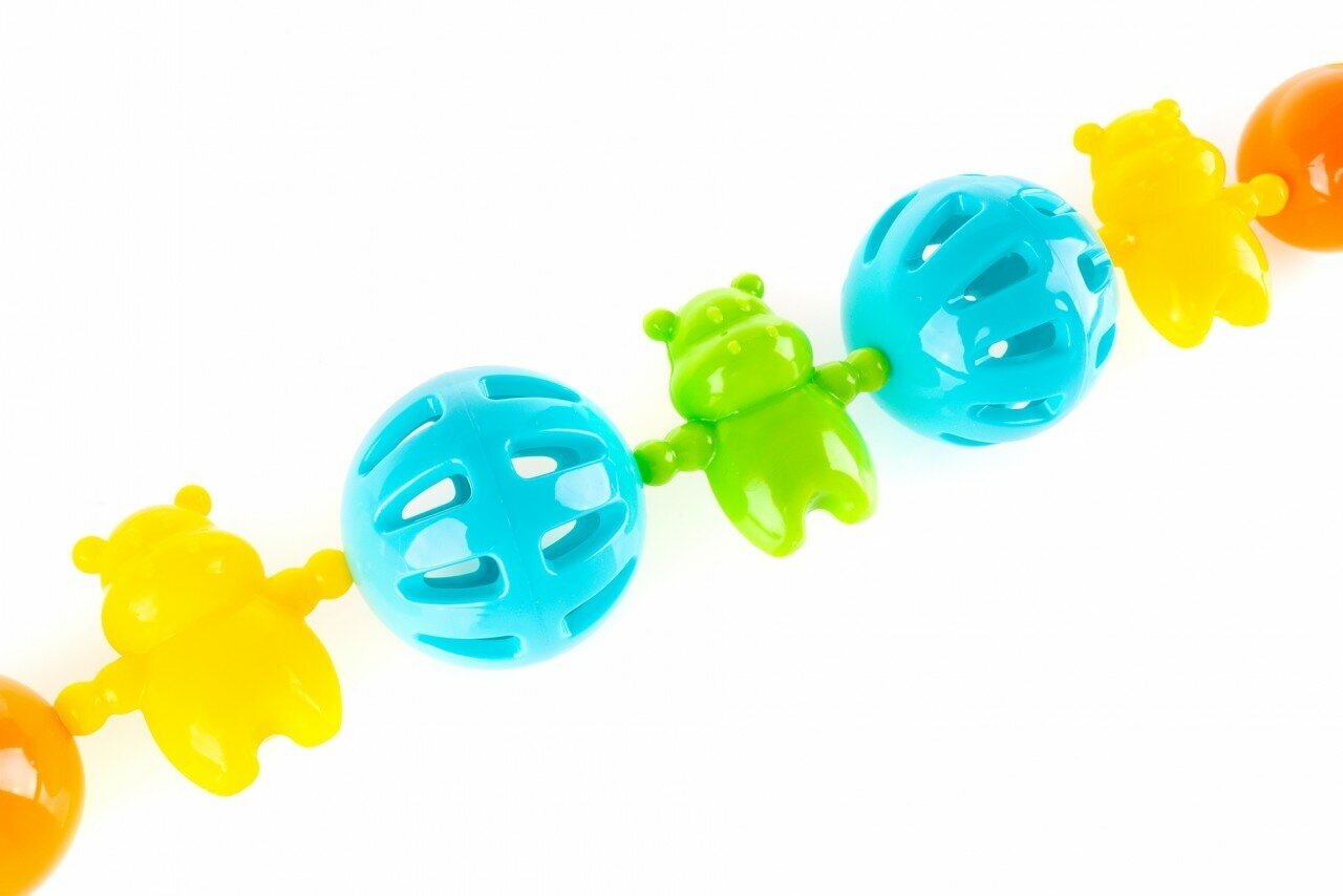 Type: stretching, effects: sound, educational elements: rattle, tactile inserts, material: plastic