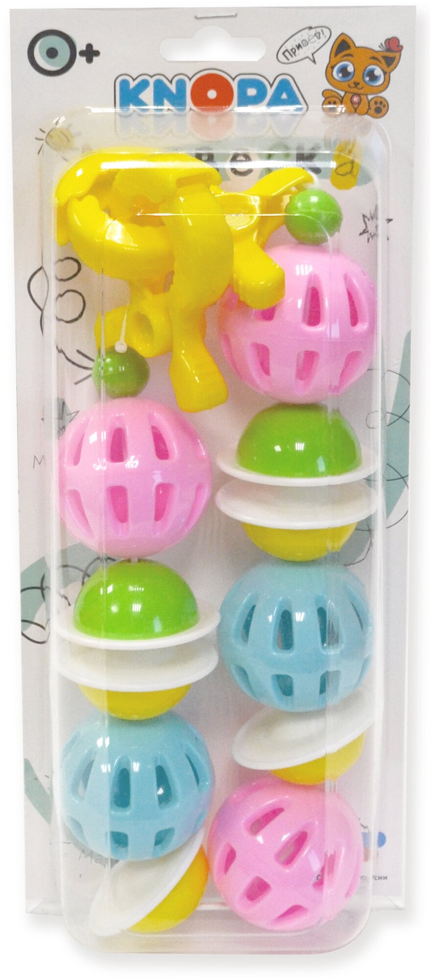 Type: stretching, effects: sound, educational elements: rattle, tactile inserts, material: plastic