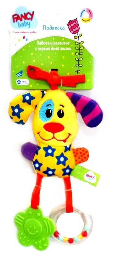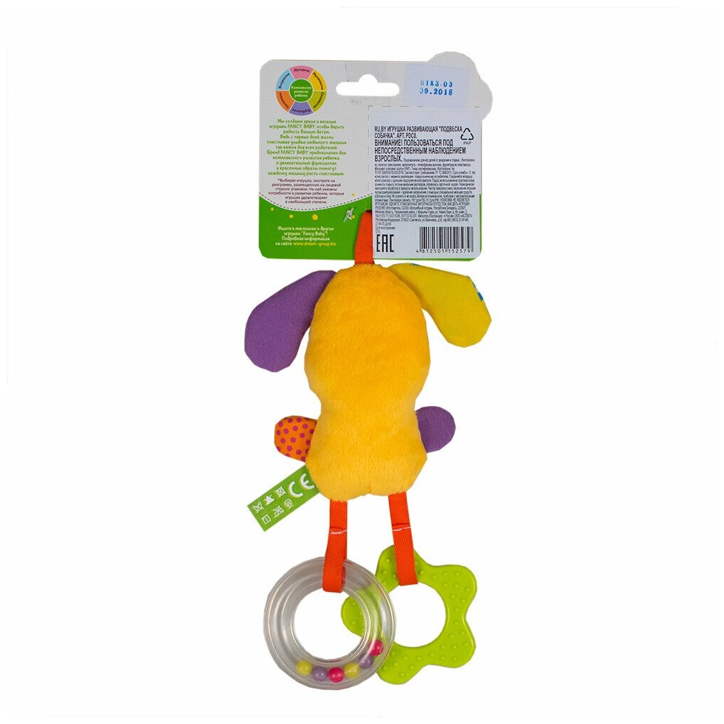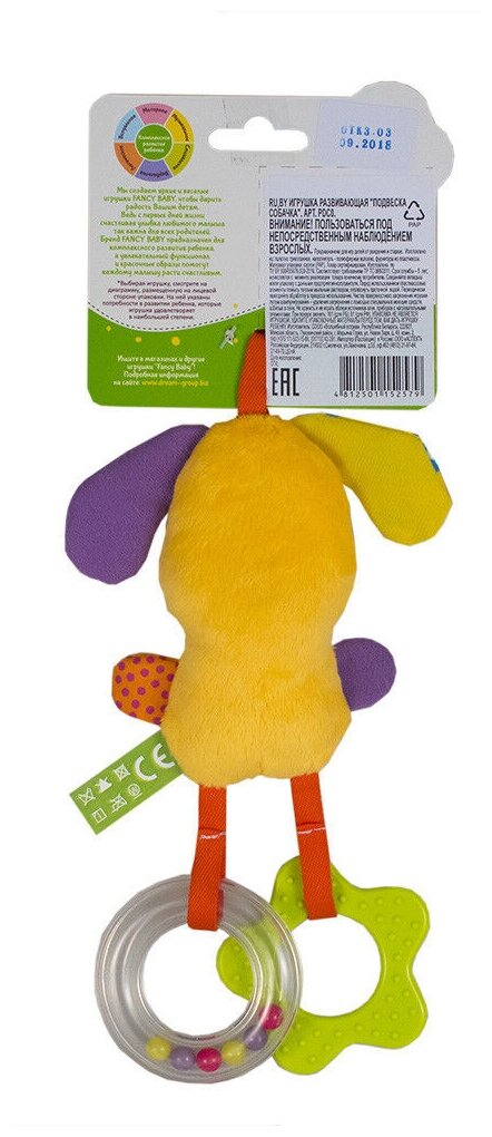 Type: hanging toy, effects: sound, educational elements: rattle, teether, tactile inserts, material: plastic, textile