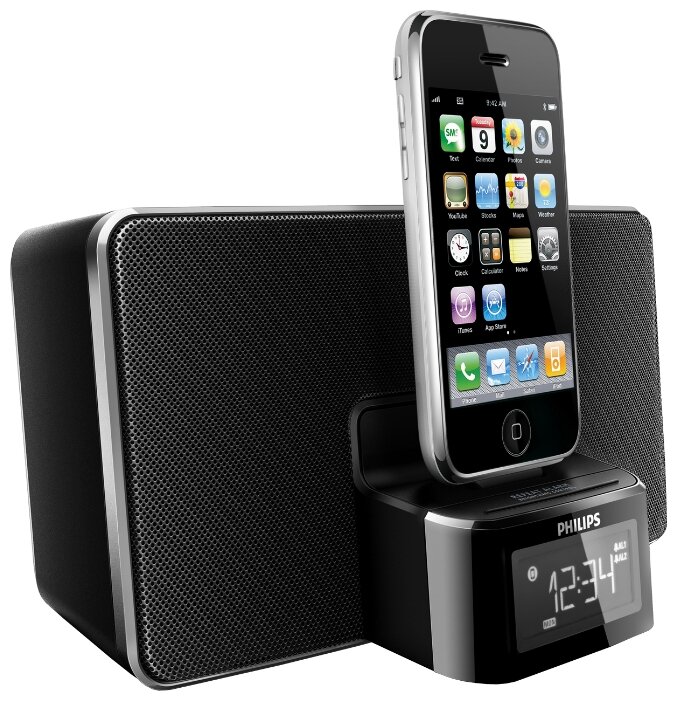 Type: stereo, total power: 5 W, connectors and interfaces: audio mini jack 3.5 mm, features: FM radio, alarm clock, built-in clock, display