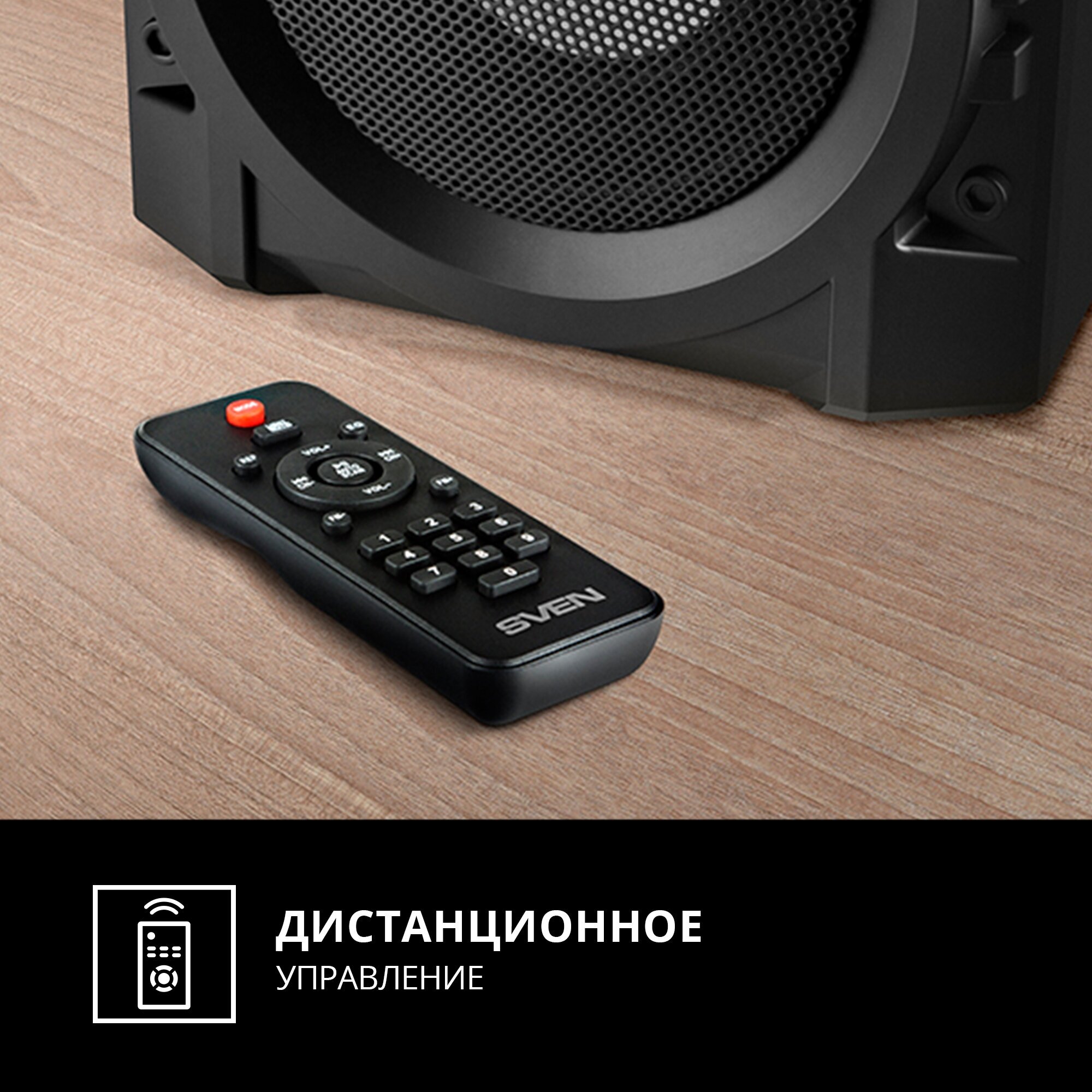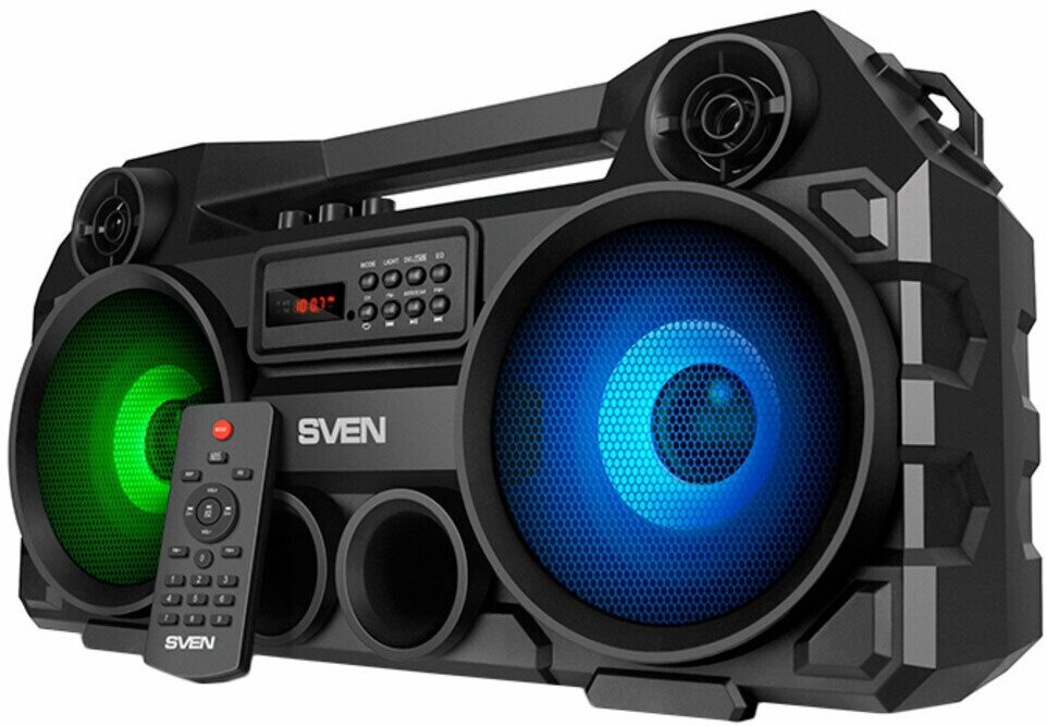 Type: stereo, total power: 20 W, wireless: Bluetooth, connectors and interfaces: USB Type-A for a flash drive, mini jack 3.5 mm audio input, features: FM radio, display, microSD support, lighting effects