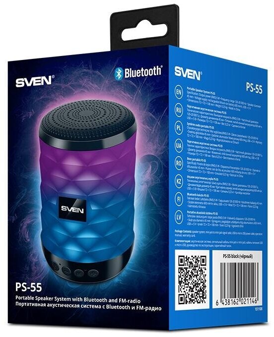 Type: mono, total power: 5 W, wireless: Bluetooth, connectors and interfaces: 3.5 mm, features: FM radio, built-in microphone, HandsFree function, microSD support, lighting effects
