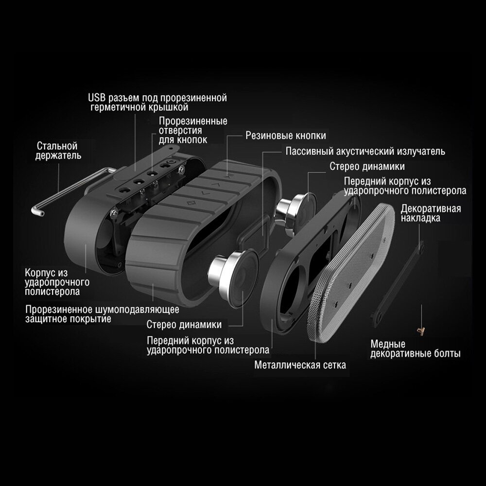 Type: stereo, total power: 6 W, wireless: Bluetooth, connectors and interfaces: audio mini jack 3.5 mm, features: built-in microphone HandsFree function
