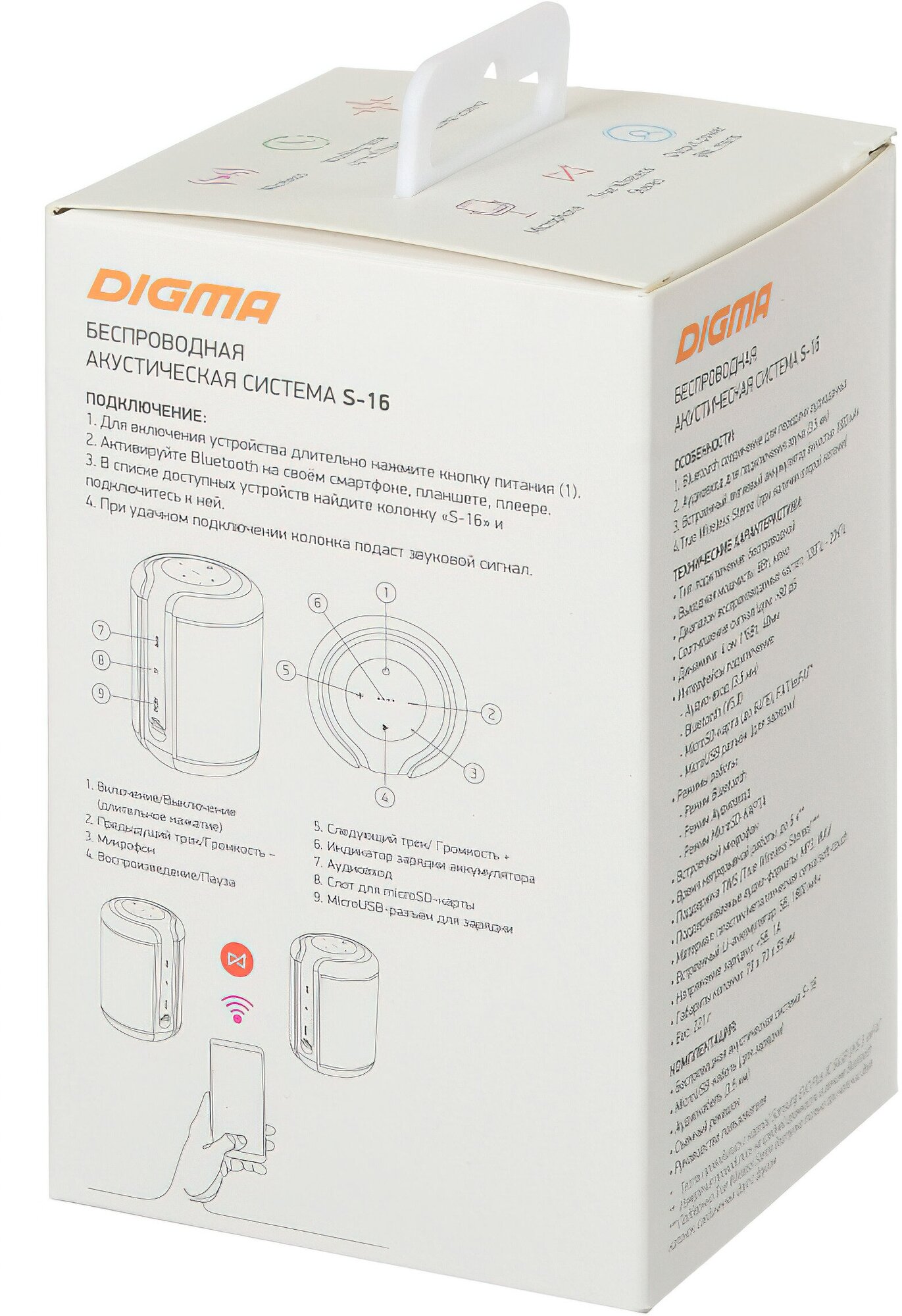 Type: mono, total power: 6 W, wireless: Bluetooth, connectors and interfaces: audio mini jack 3.5 mm, features: built-in microphone, HandsFree function, carabiner, microSD support