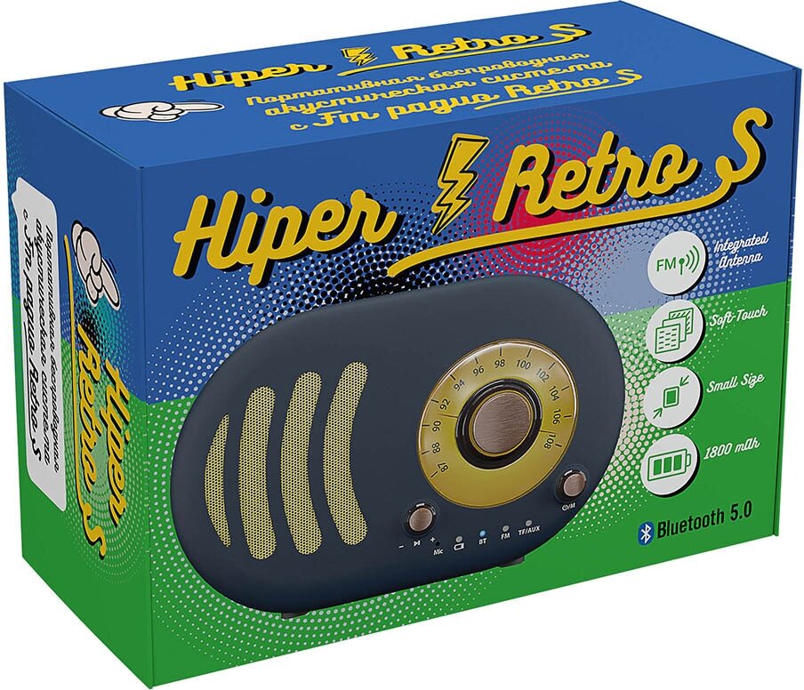 Portable speaker Hiper RETRO S, BT, 5 W, Micro-USB, 1800 mAh, black