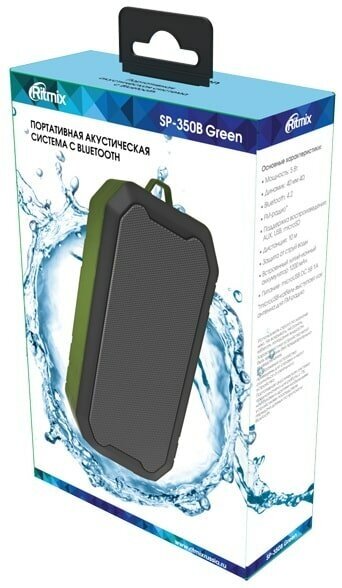 Type: mono, total power: 5 W, wireless: Bluetooth, connectors and interfaces: USB Type-A for a flash drive, audio mini jack 3.5 mm, features: FM radio, waterproof housing, built-in microphone HandsFree function, microSD support