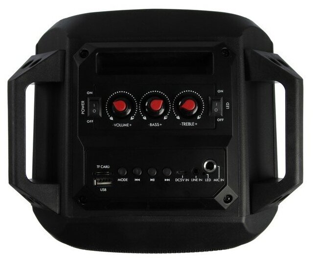 Type: stereo, total power: 24 W, wireless: Bluetooth, connectors and interfaces: USB Type-A for a flash drive, audio mini jack 3.5 mm, features: FM radio, display, karaoke, microSD support, lighting effects