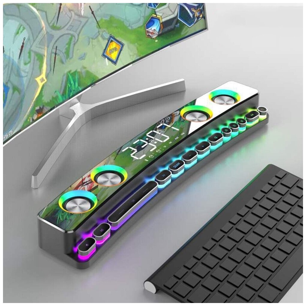 Wireless Bluetooth Game Speaker Soundbar USB 3D Stereo Subwoofer AUX FM Home Clock D