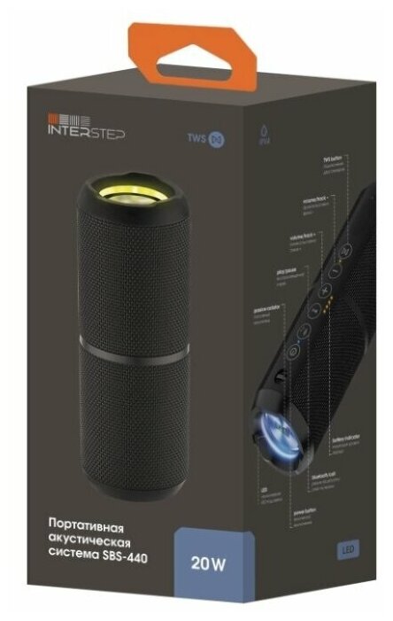 Portable speaker Interstep SBS-440, 20W, Bluetooth, memory card, AUX, speakerphone, black
