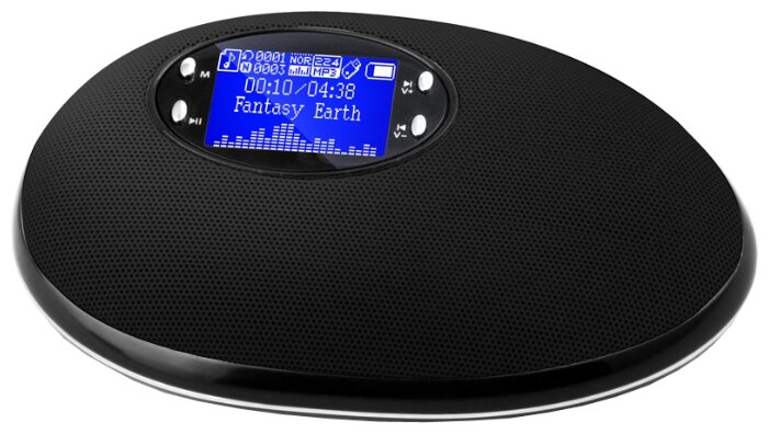 Type: mono, total power: 3 W, connectors and interfaces: USB Type-A for a flash drive, audio input mini jack 3.5 mm, headphone output, features: FM radio, display, microSD support