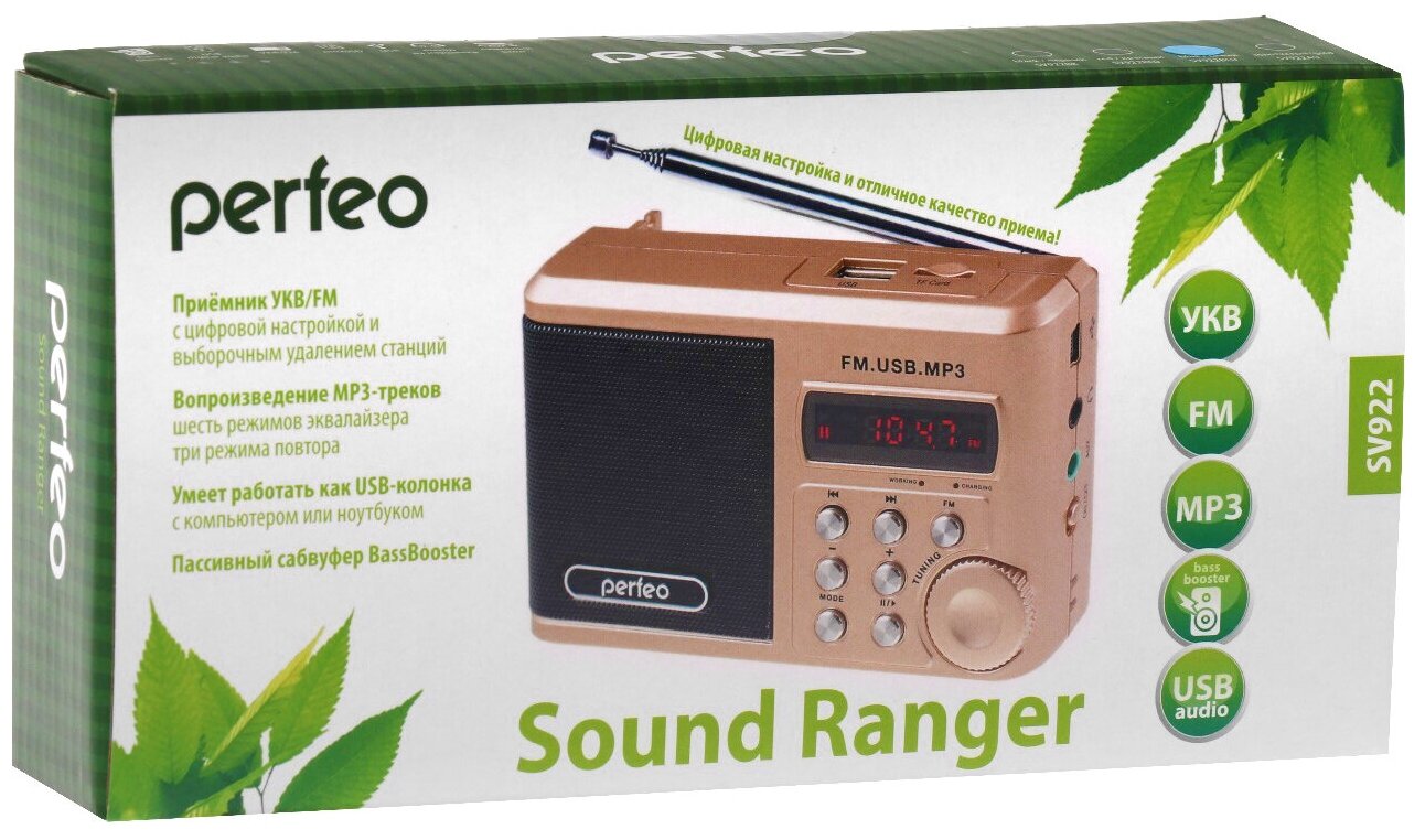 Portable speaker Perfeo Sound Ranger SV922 FM/USB/MicroSD/AUX, golden