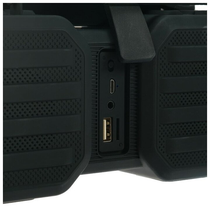 Description: Type: stereo, total power: 10 W, wireless: Bluetooth, connectors and interfaces: USB Type-A for a flash drive, audio mini jack 3.5 mm, microUSB, features: FM radio, built-in microphone HandsFree function, microSD support, handle , Subwoofer