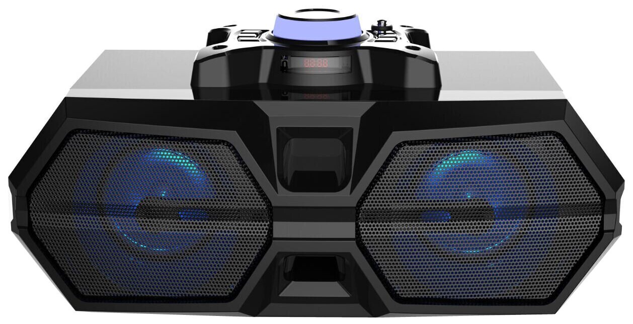 Type: stereo, total power: 20 W, wireless: Bluetooth, connectors and interfaces: USB Type-A for flash drive, audio input mini jack 3.5 mm, features: FM radio, display