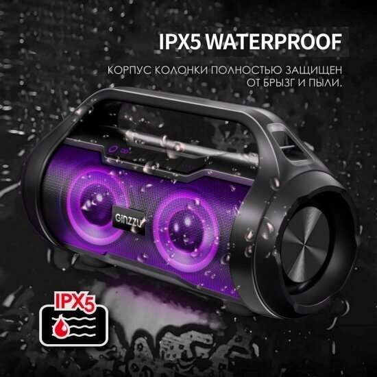 Type: stereo, total power: 20 W, wireless: Bluetooth, connectors and interfaces: USB Type-A for a flash drive, audio input mini jack 3.5 mm, 3.5 mm, USB, microUSB, features: FM radio, waterproof case, support microSD, pen, light eff