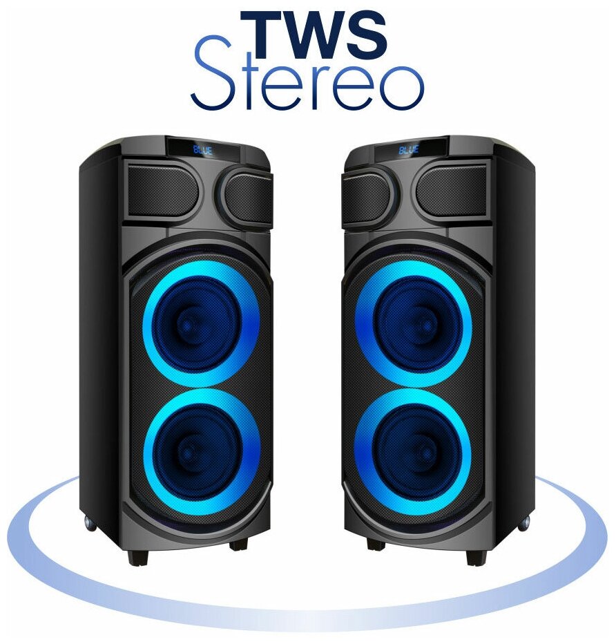 Type: stereo, total power: 80 W, wireless connection: Bluetooth, connectors and interfaces: USB Type-A for a flash drive, mini jack 3.5 mm audio input, features: FM radio, display, karaoke, microSD support, Power Bank mode, pen, light effects
