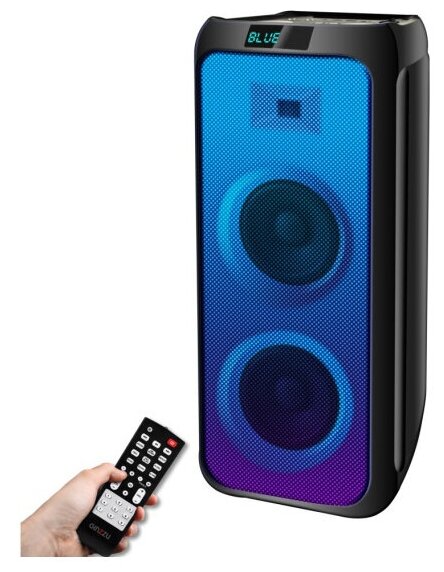 Type: stereo, total power: 80 W, wireless: Bluetooth, connectors and interfaces: USB Type-A for a flash drive, audio input, mini jack 3.5 mm audio input, features: FM radio, microSD support, lighting effects