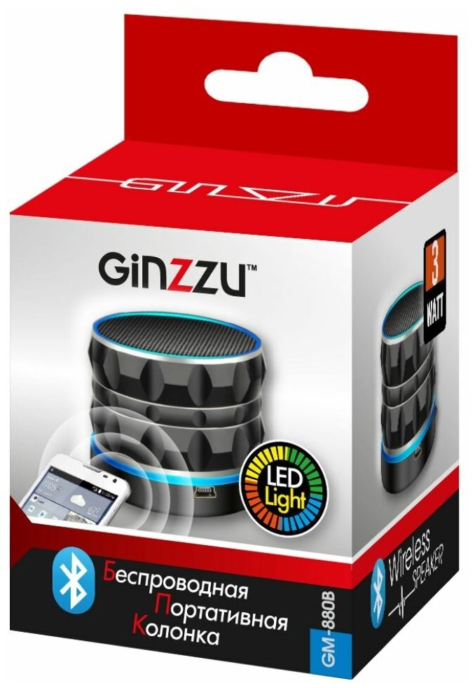 Type: mono, total power: 3 W, wireless: Bluetooth, connectors and interfaces: USB Type-A for a flash drive, audio input mini jack 3.5 mm, features: FM radio, microSD support