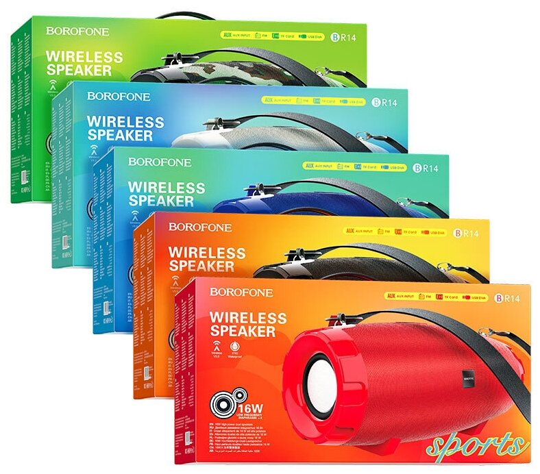 Type: stereo, total power: 16W, wireless: Bluetooth, connectors and interfaces: AUX, Bluetooth, FM, TF card, USB, 3.5 mm audio input, features: FM radio, built-in microphone HandsFree function