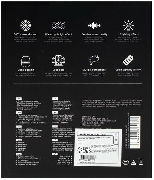 FM radio, built-in microphone, handsfree function, SD support, microSD support, lighting effects