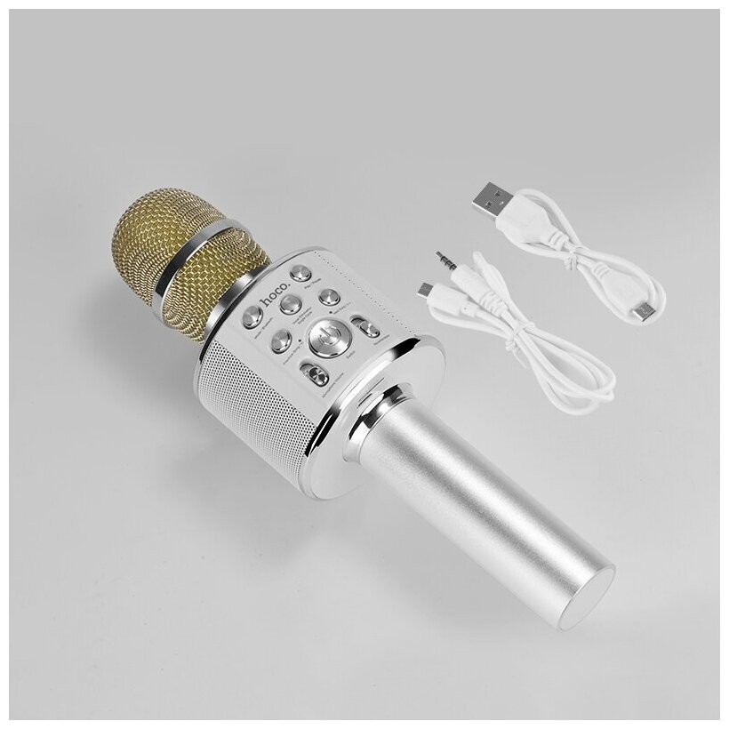 Portable wireless acoustics karaoke HOCO BK3 Cool sound KTV microphone color silver