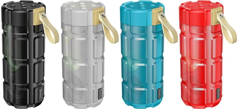 Type: stereo, total power: 10 W, wireless: Bluetooth, connectors and interfaces: USB Type-A for a flash drive, mini jack 3.5 mm audio input, features: FM radio, microSD support, strap, lighting effects