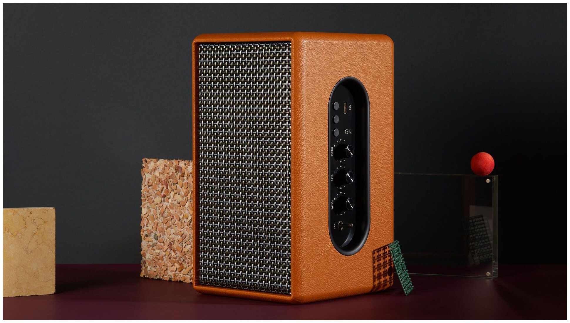 Wood, leather, plastic