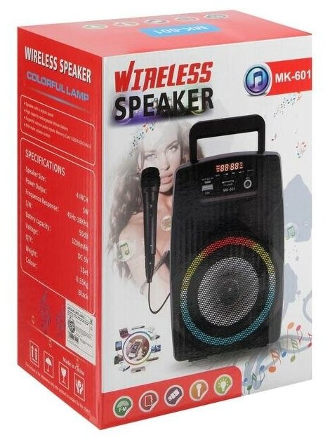 Portable speaker LAB-08 MK-601, 5W, 600 mAh, TF, FM, AUX, USB, MIC, backlit, black