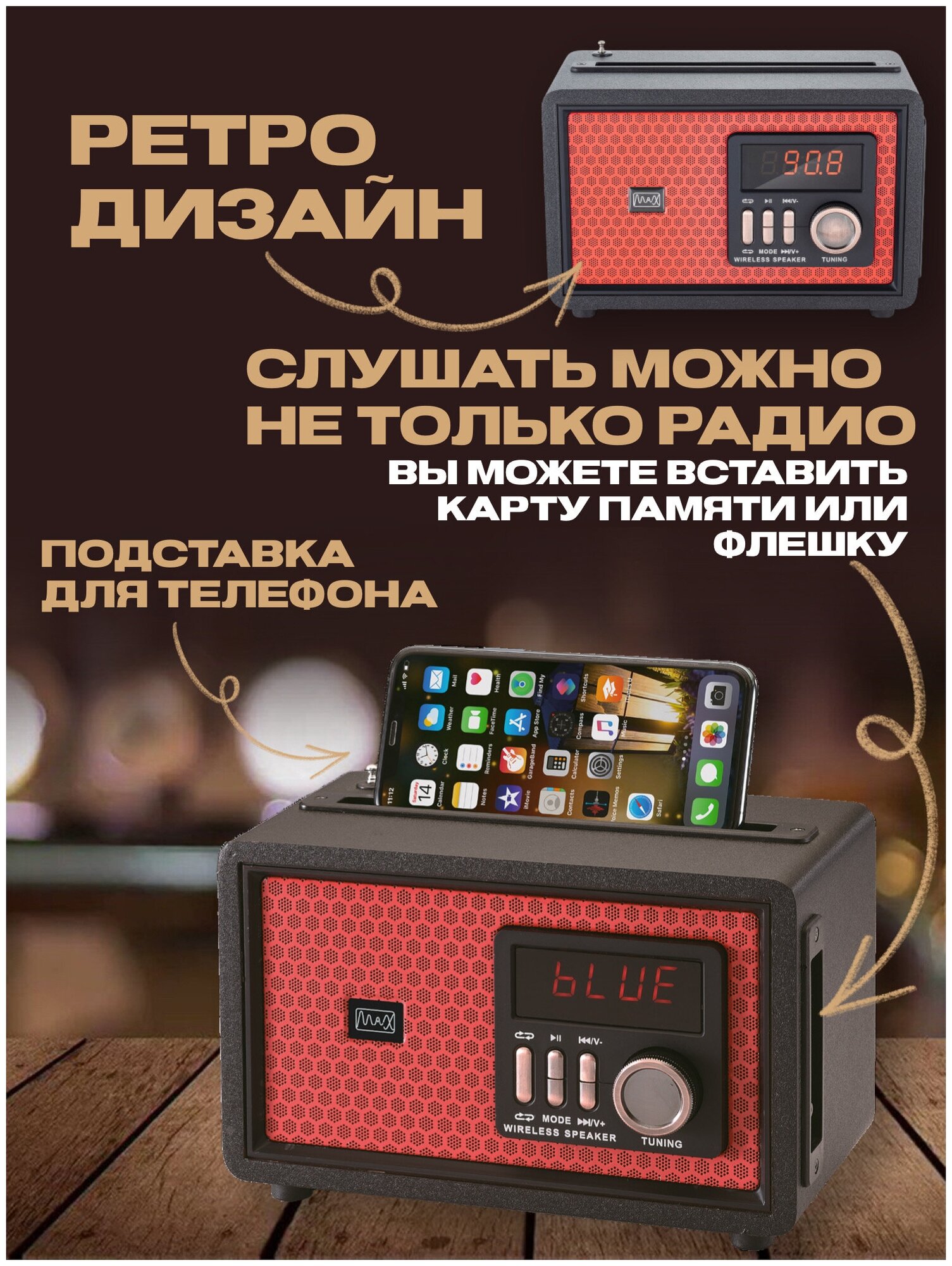 FM radio, microSD support