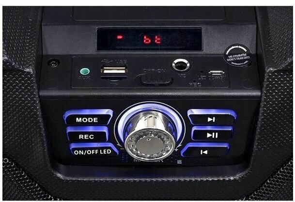Description: Type: mono, total power: 15 W, wireless: Bluetooth, connectors and interfaces: USB Type-A for a flash drive, audio mini jack 3.5 mm, features: FM radio, display, karaoke, microSD support, lighting effects