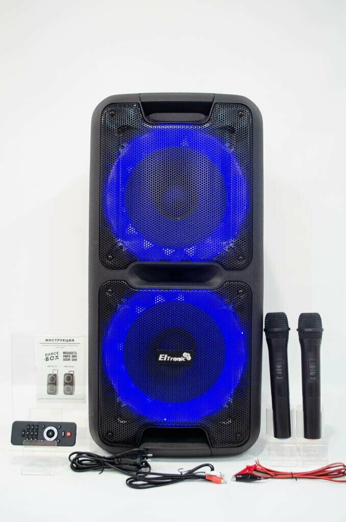 Additional Information: Portable speaker Eltronic 20-14 Dance Box 300, wireless microphone 2 pcs., remote control, power cable 220V, connection cable 12V, documentation; TWS function to synchronize two speakers into a stereo system via Bluetooth; telescopic handle