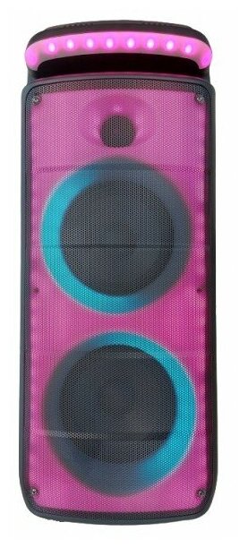 Type: rechargeable speaker, total power: 800 W, wireless: Bluetooth, features: karaoke, pen, lighting effects, radio microphone
