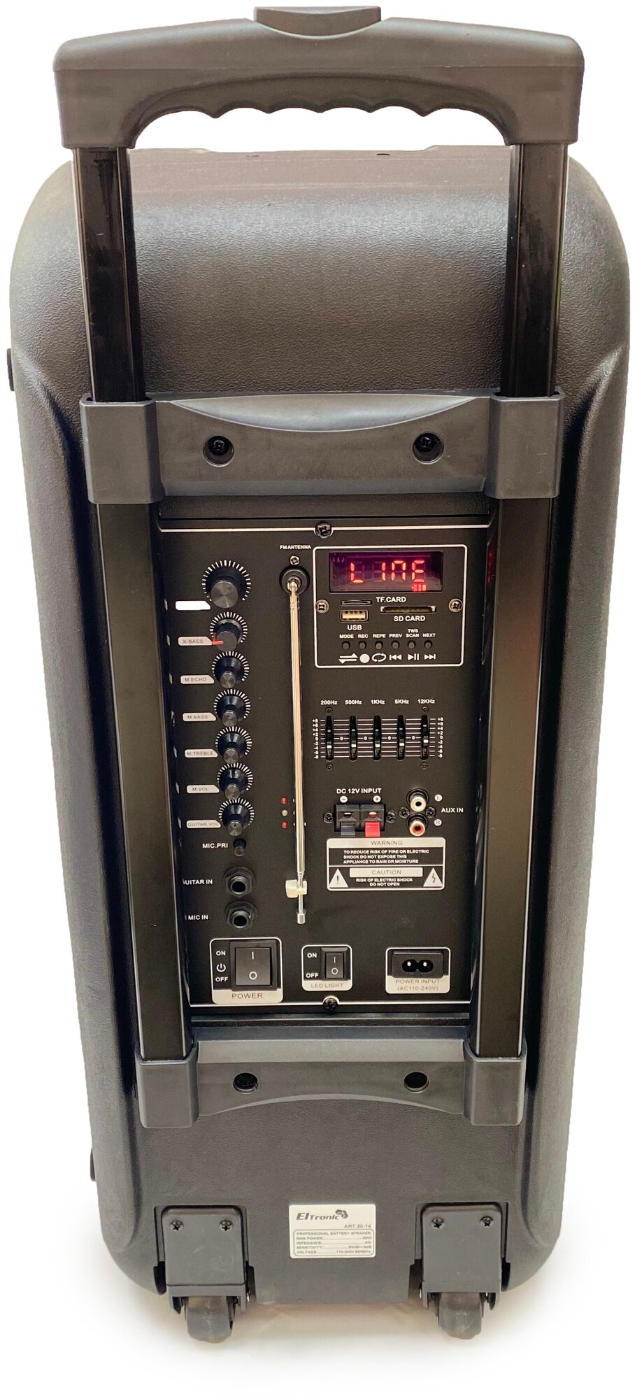 FM radio, display, SD support, microSD support, handle, lighting effects