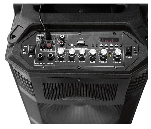 Connector for connecting a guitar, microphone; LED backlight