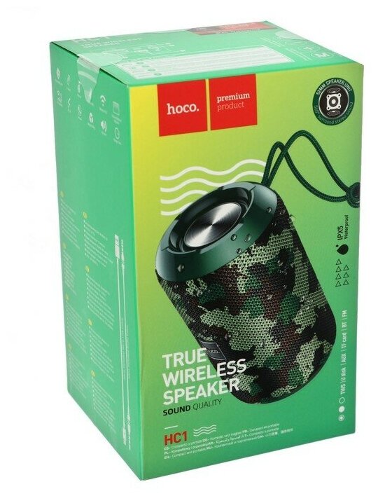 Portable speaker Hoco HC1, 5 W, 1200 mAh, BT5.0, microSD, USB, AUX, FM radio, camouflage