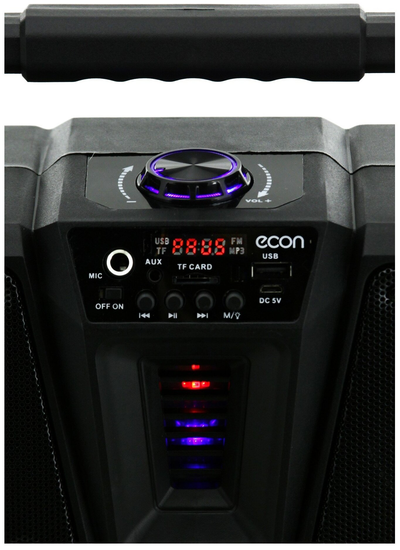 FM radio, display, lighting effects