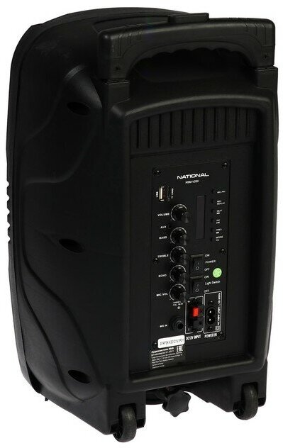 Type: mono, total power: 80 W, wireless: Bluetooth, connectors and interfaces: USB Type-A for a flash drive, audio mini jack 3.5 mm, 3.5 mm, USB, features: FM radio, display, karaoke, microSD support