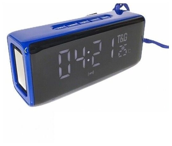 Type: stereo, total power: 10 W, wireless: Bluetooth, Wi-Fi, features: FM radio, alarm clock, built-in clock, built-in microphone, HandsFree function, display, strap
