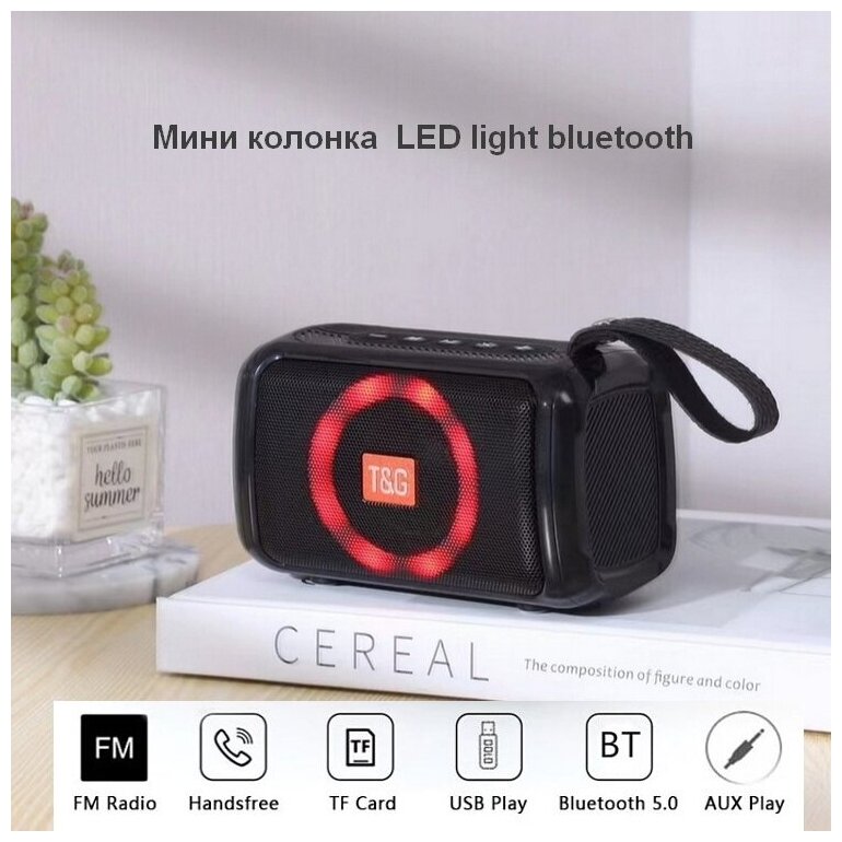 Wireless portable speaker T&G TG-193 Bluetooth 5.1, TWS, FM, SD, USB, AUX, MIC, LED, black