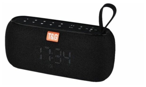 FM radio, alarm clock, built-in clock, microSD support, strap