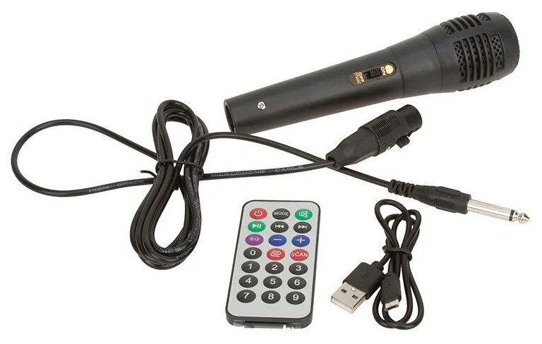 FM radio, display, karaoke, microSD support, lighting effects
