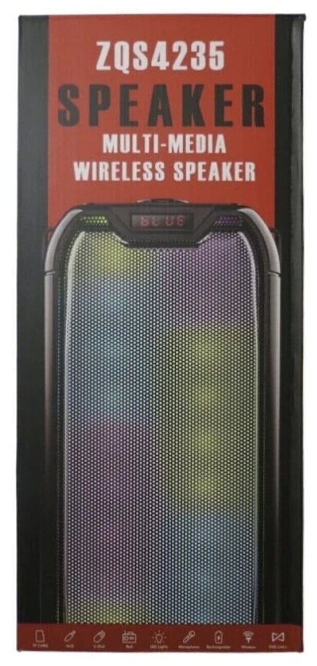 FM radio, built-in microphone, handsfree function, display, karaoke, SD support, strap, lighting effects