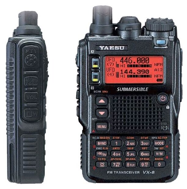 Type: walkie-talkie, number of channels: 1267 pcs., transmitter power: 5 W, frequency range: UHF, VHF, frequency range, min.: 50 MHz, features: CTCSS, DCS, DTMF, FM radio, keypad lock, quick setting to the emergency channel