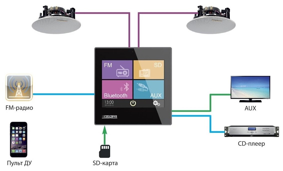 DSPPA DM-837B music player with built-in two-channel stereo amplifier, black